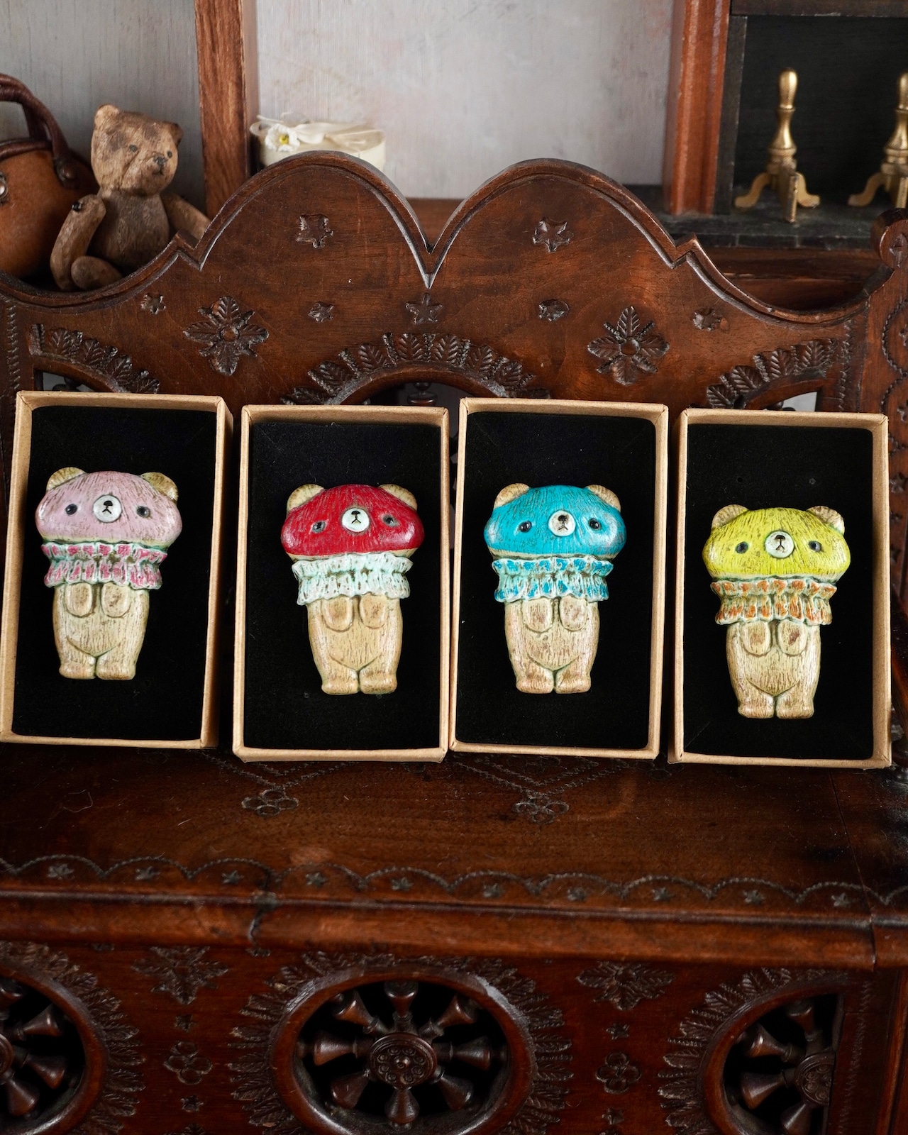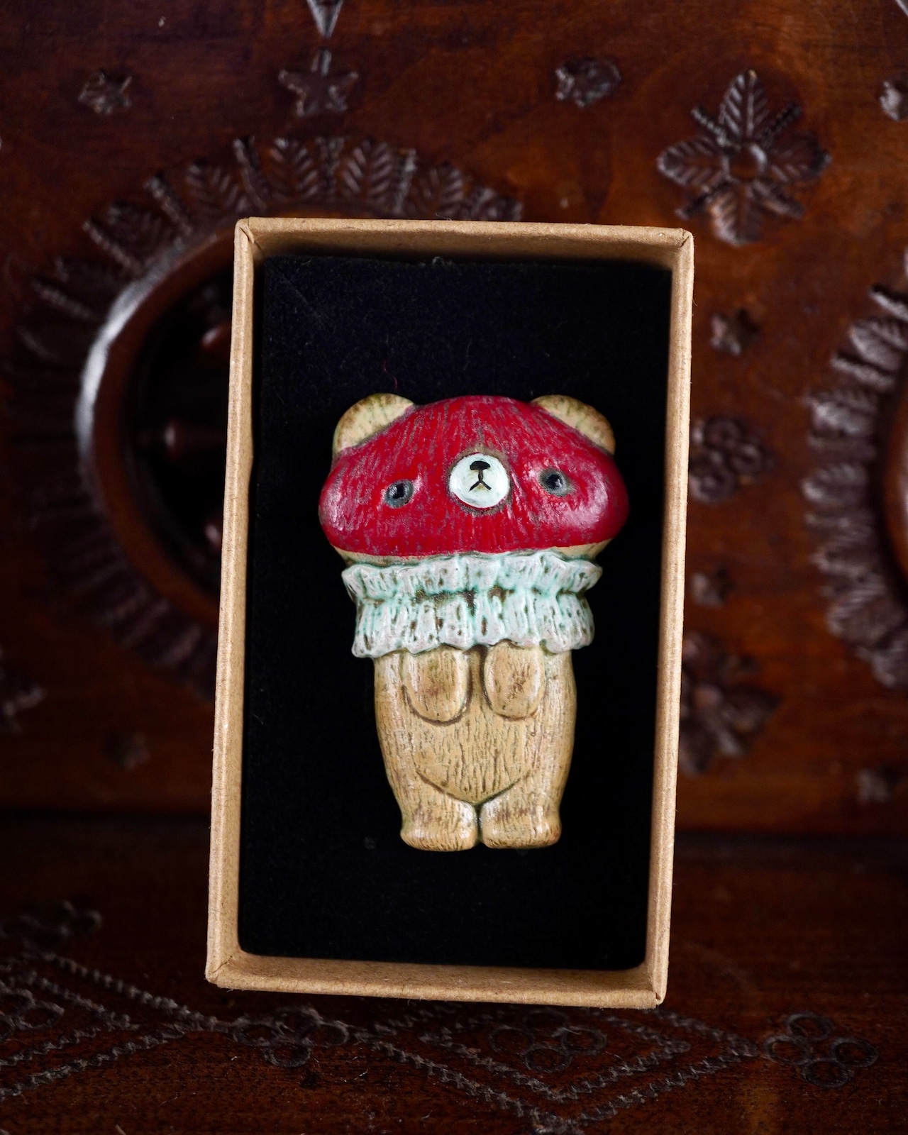 なんと快くお受けいただき、この度クマキノコブローチが爆誕しました。