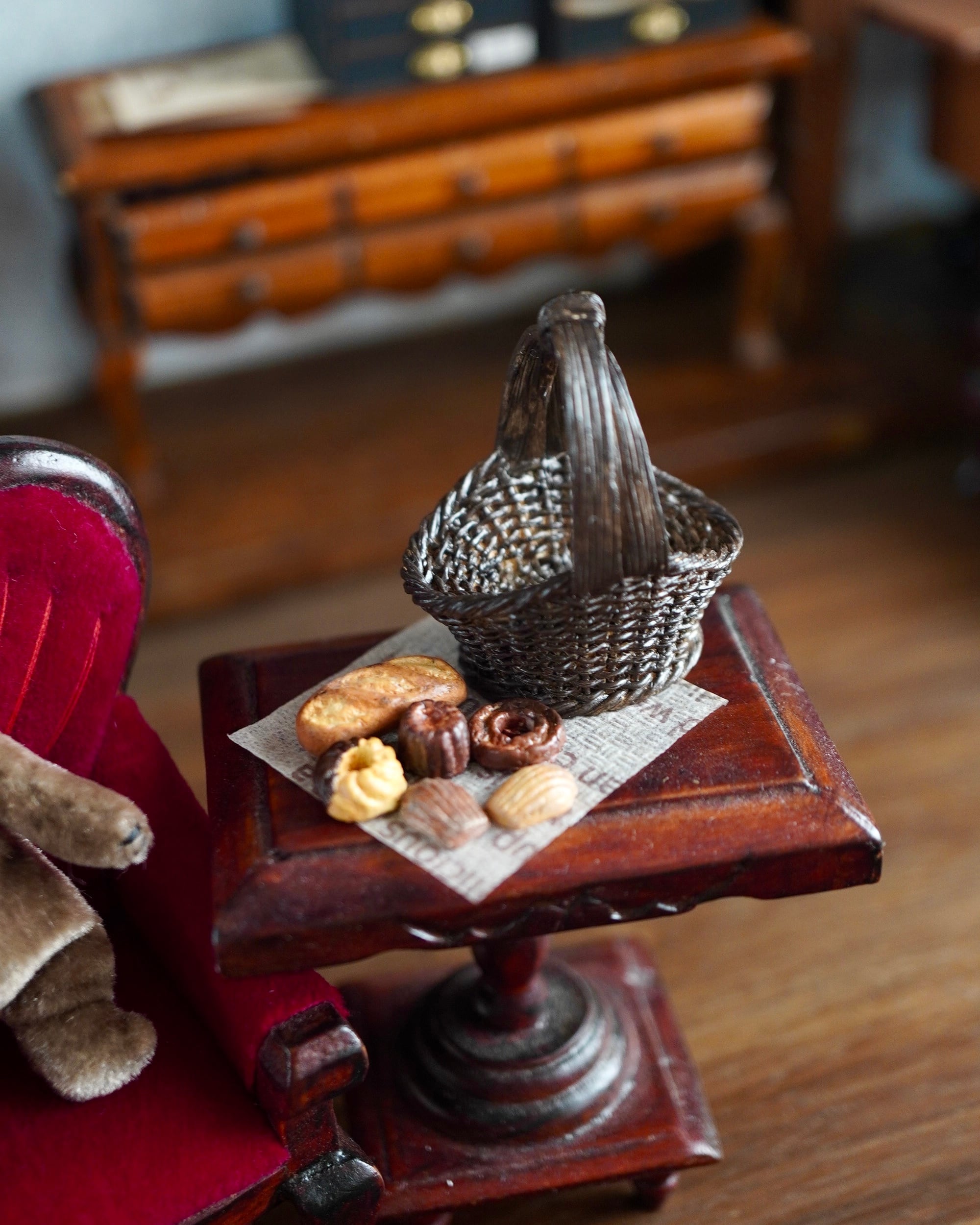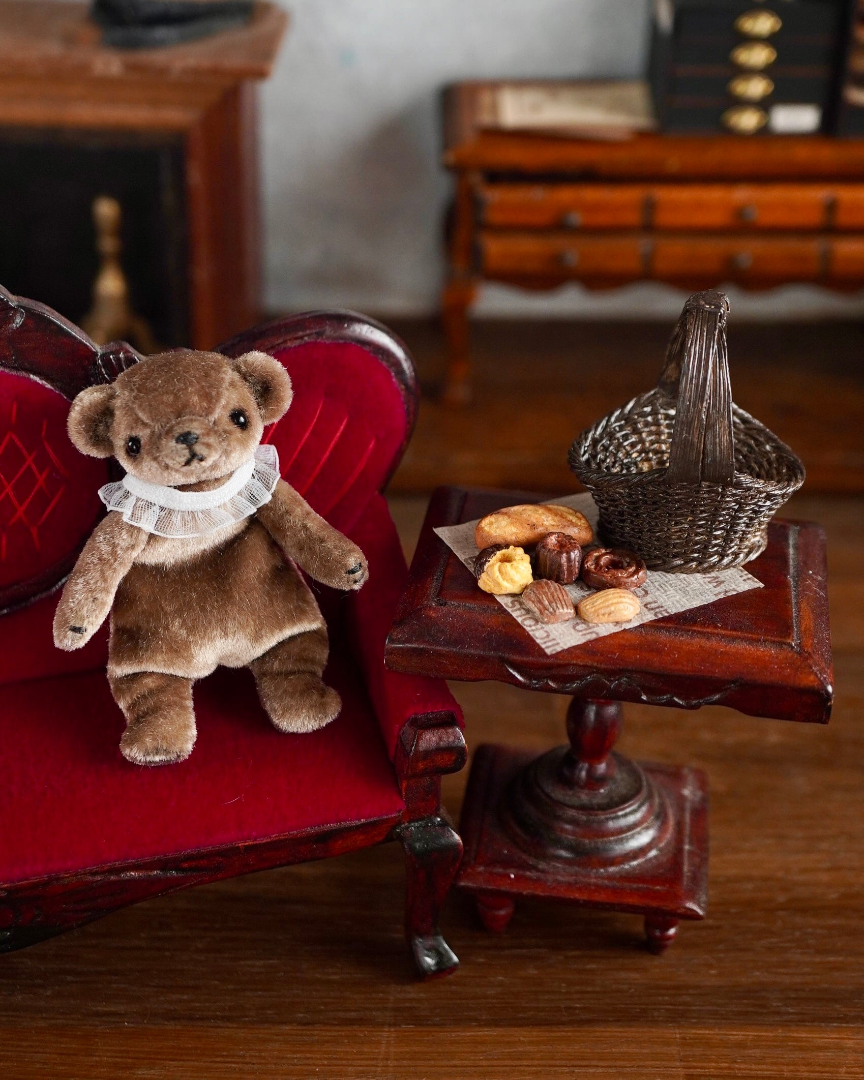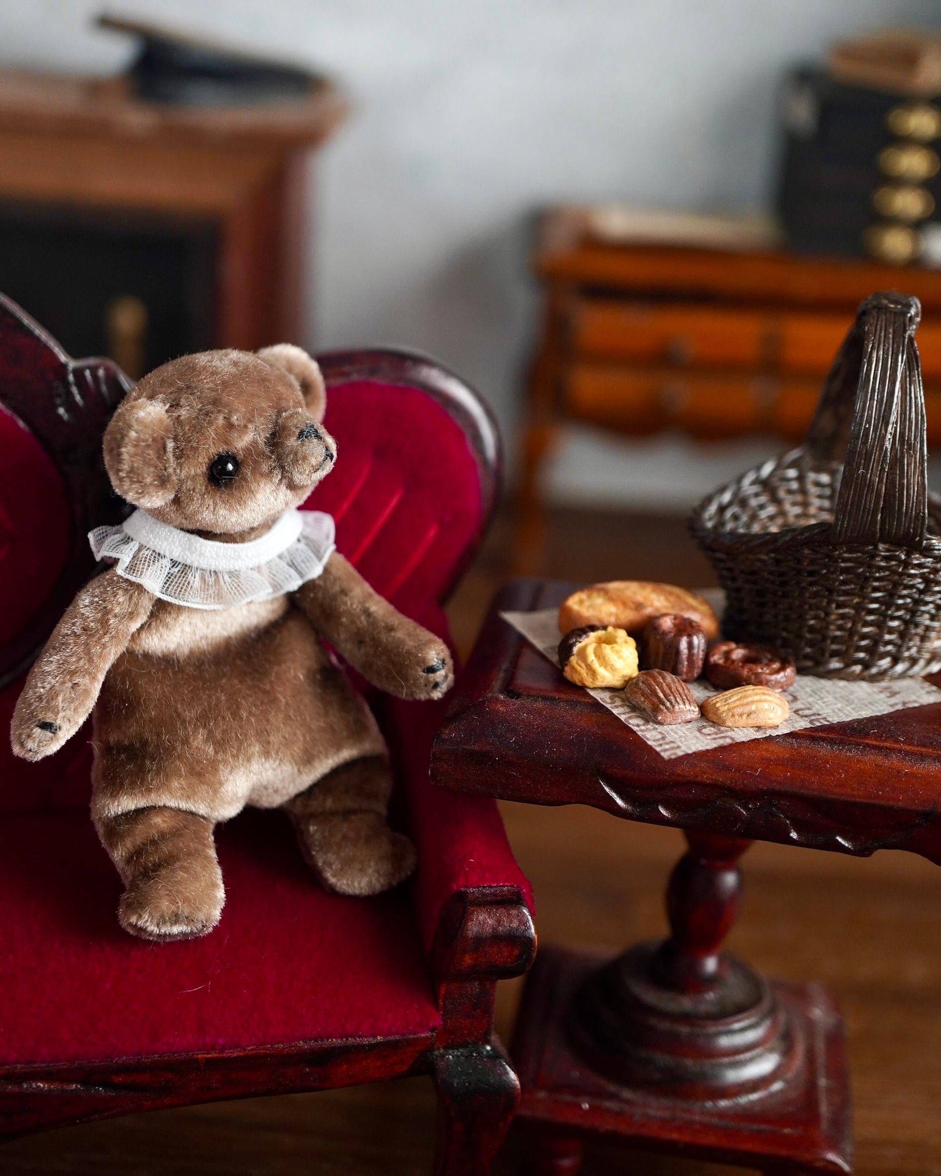 小さなクマさんとお菓子とパン達のミニチュアセットをご用意しました。