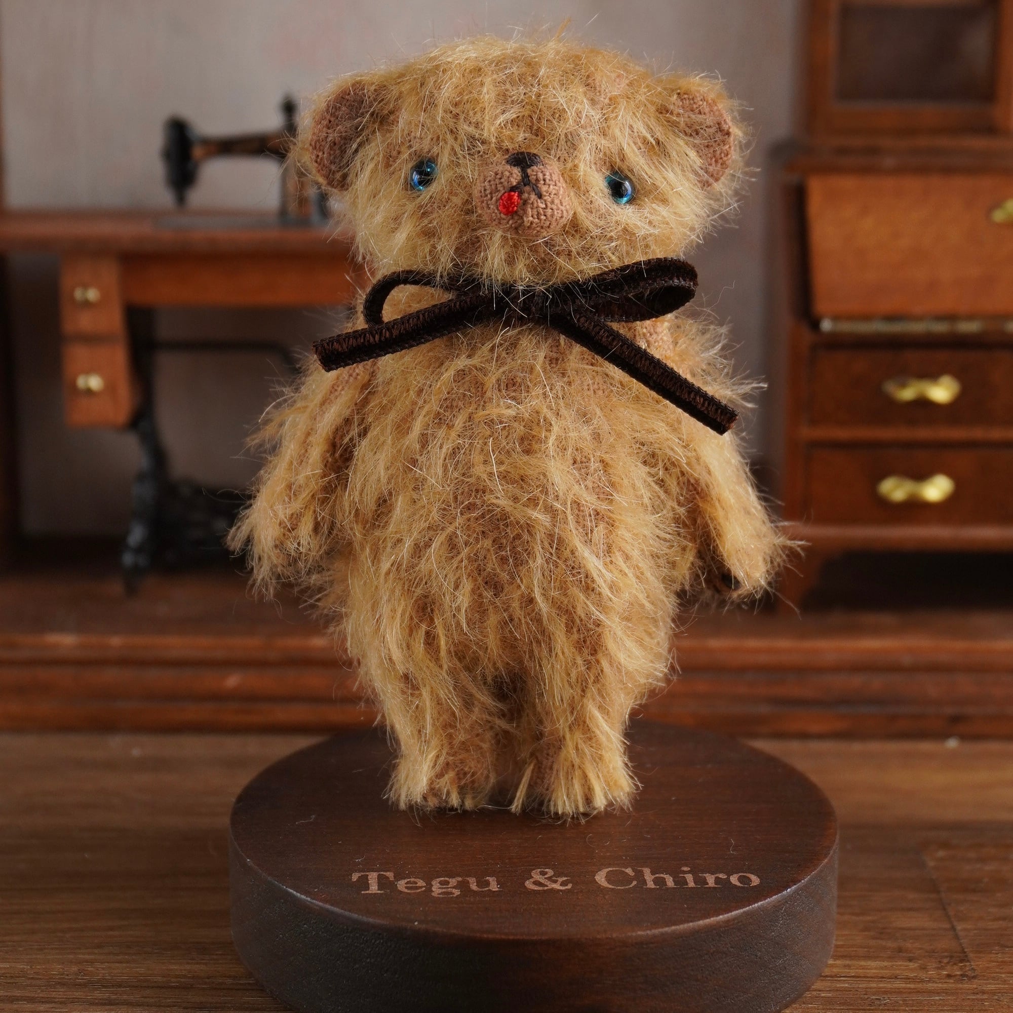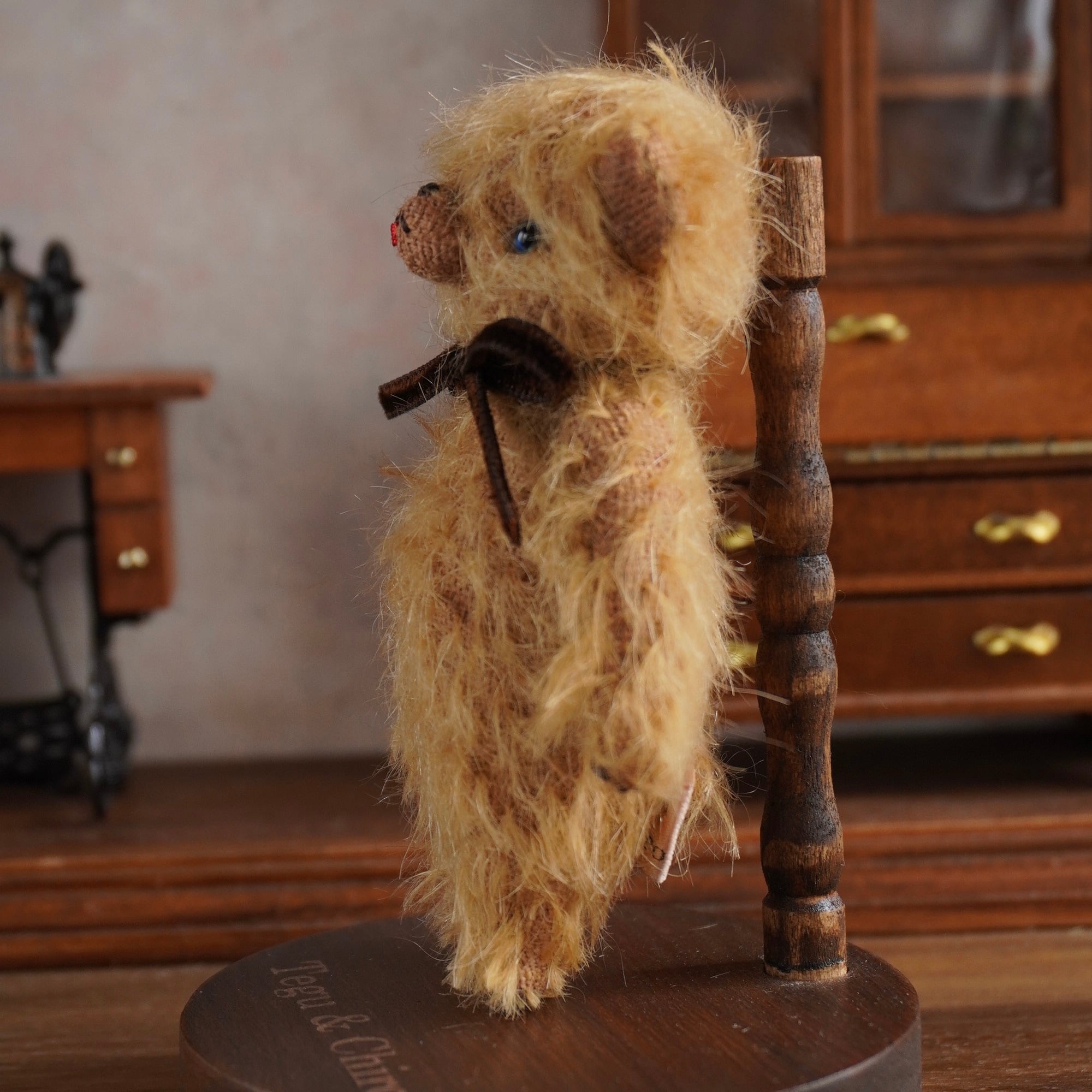ぬいぐるみを当てて立てて展示するために手作りで作った木製のスタンドです。