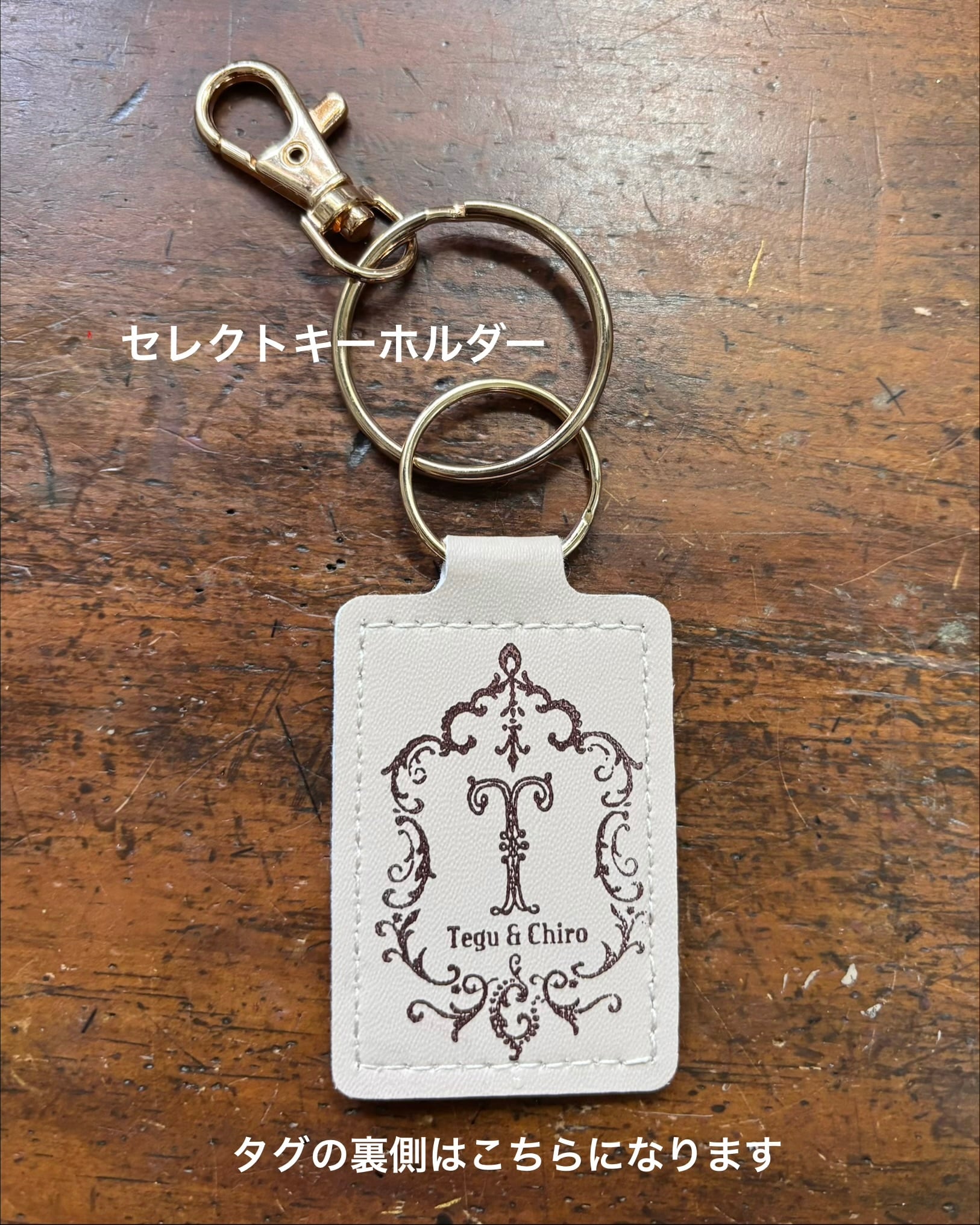 キーホルダーのタグ(合皮)の色と絵柄を選べる
