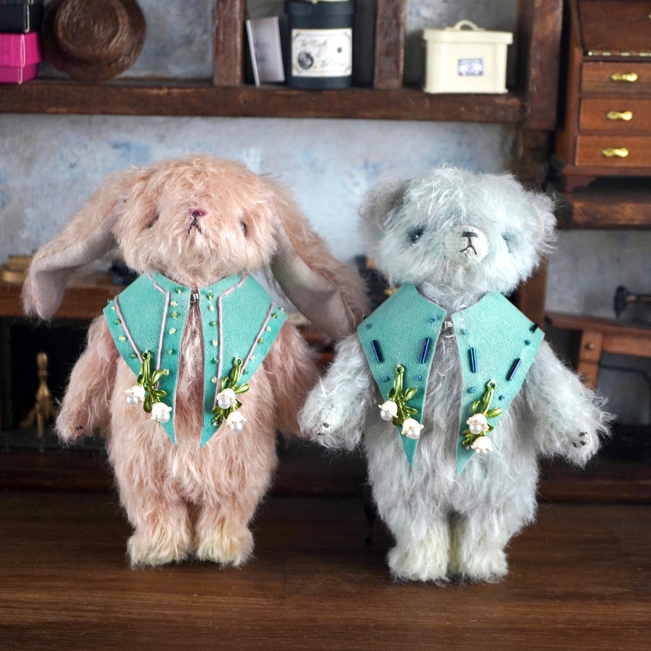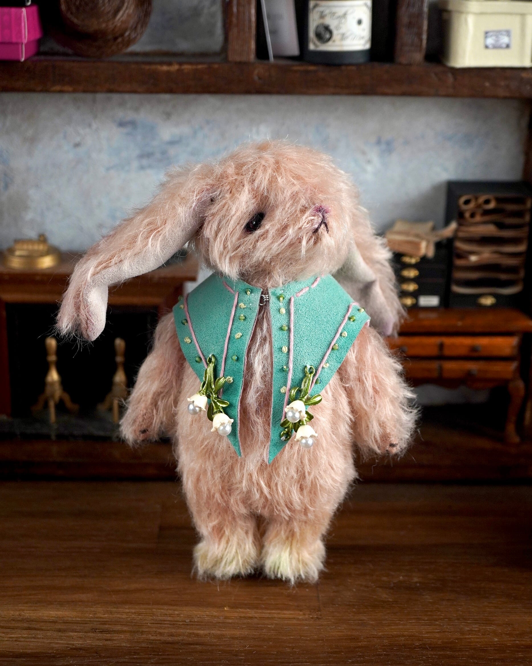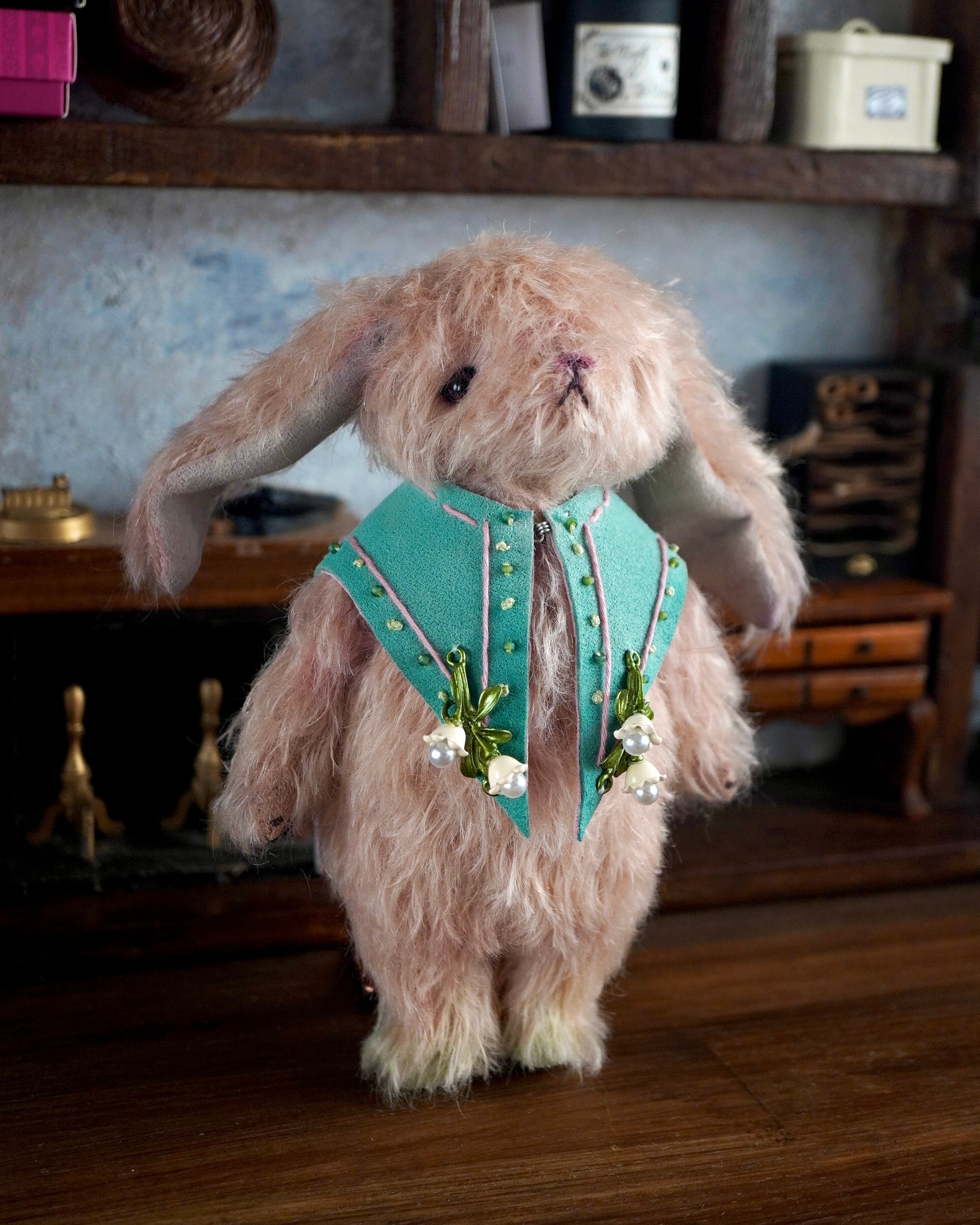 ・飾りえり:フェイクスウェード、ビーズ、鈴蘭:金属製