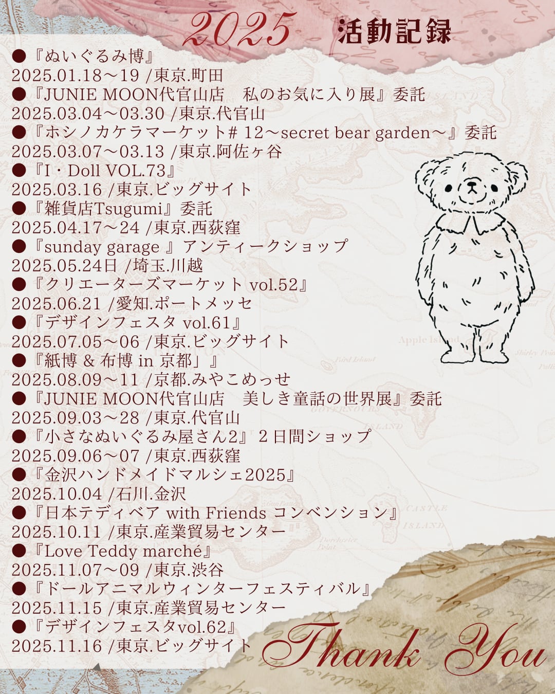 出展・委託スケジュール | ぬいぐるみ作家 Tegu & Chiro